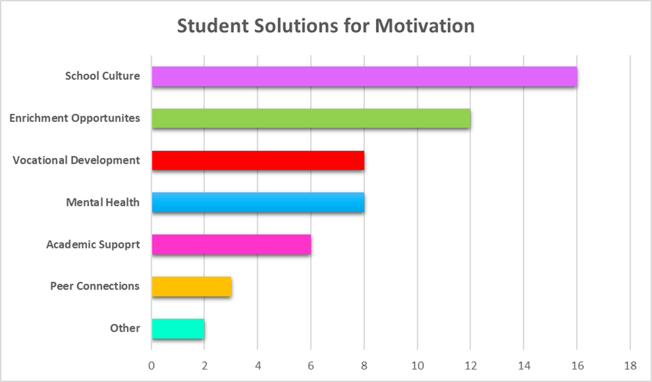 When we asked students what they would do to improve motivation, the top response was “change school culture” by helping students feel heard, understood, and valued.